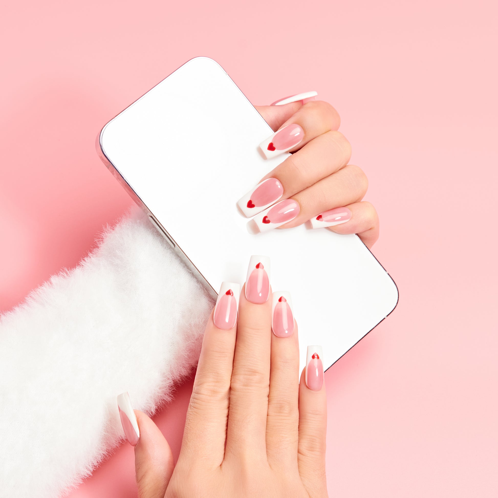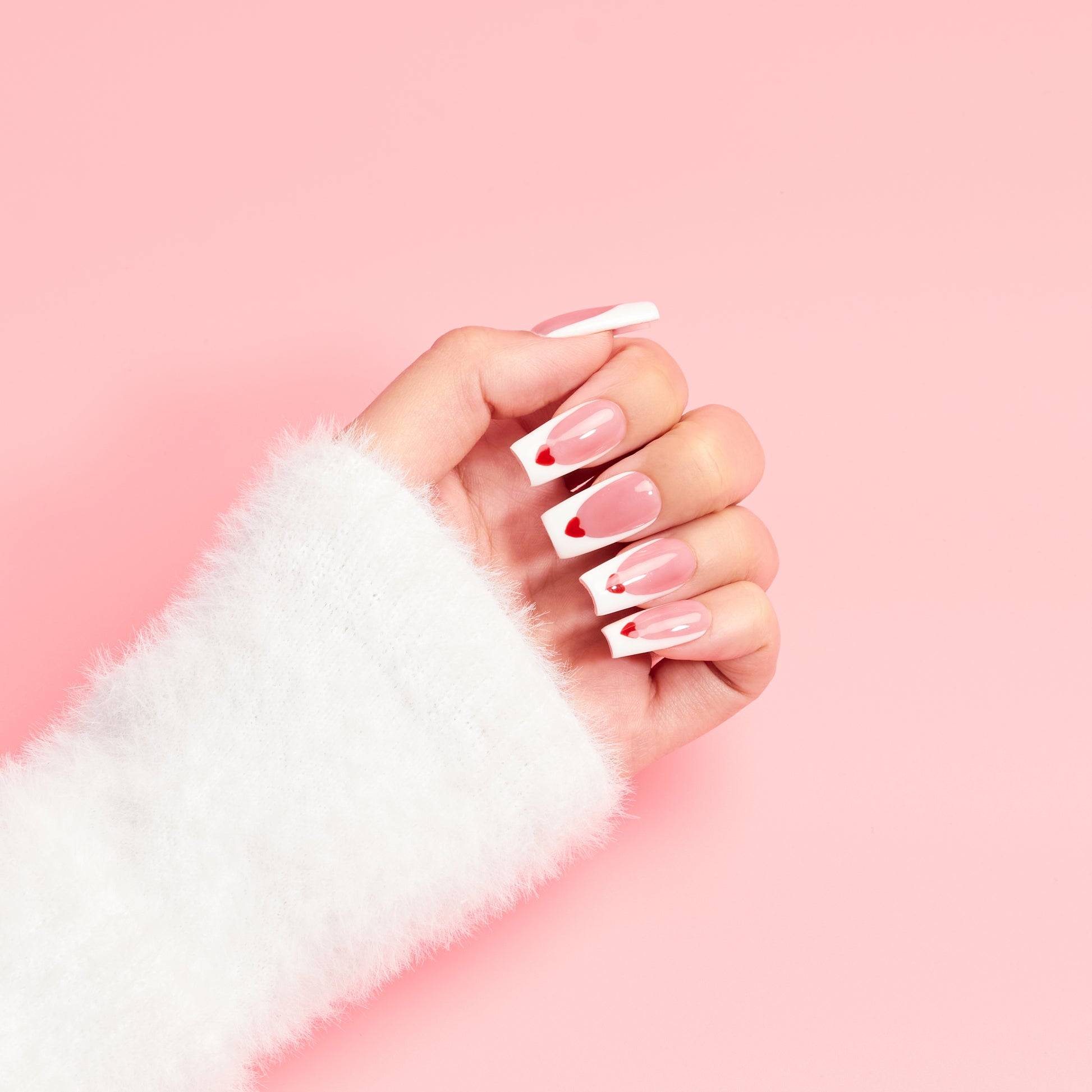 Love Letter Valentines Press-On Nails | Soft Pink French Tip Heart Nails